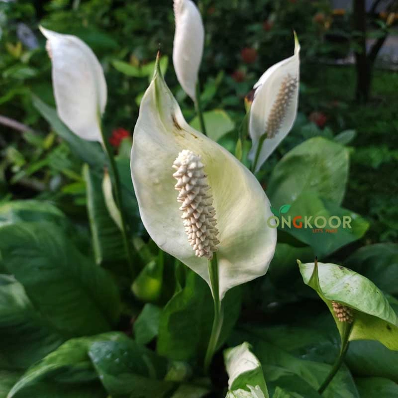 - ফুল: সাদা, লম্বা স্প্যাথে আবৃত, শান্তিময় ও সৌন্দর্যময়।